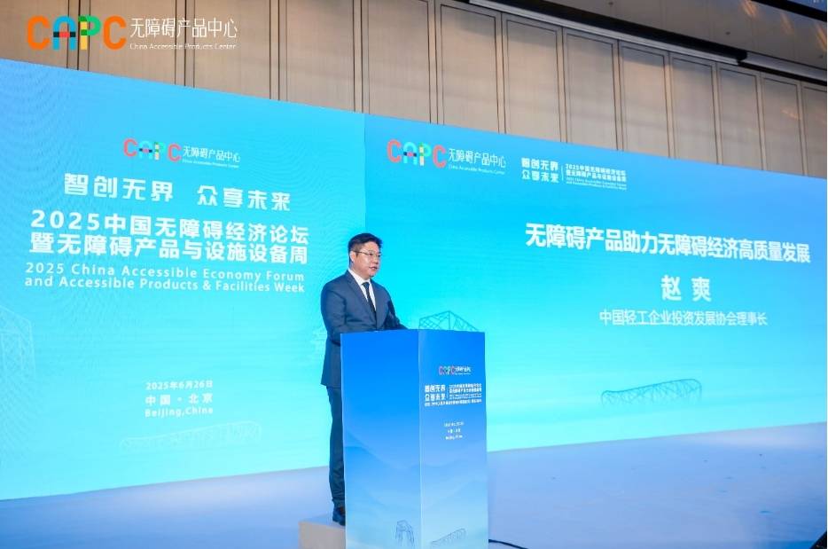 2023年,第十四届全国人大常委会第三次会议表决通过了《中华人民共和国无障碍环境建设法》,彰显了党中央对民生领域法治化、制度化的战略布局。2025年正值该法颁布两周年,为深入贯彻党的二十大和二十届二中、三中全会精神,落实党中央、国务院决策部署,积极响应《中华人民共和国无障碍环境建设法》的深化实施,6月26日,由中国轻工企业投资发展协会主办,国家无障碍环境展示馆指导,中国房地产业协会、中国船级社质量认证有限公司、中国建筑标准设计研究院有限公司、中国国检测试控股集团股份有限公司、中国信息通信研究院、粤港澳大湾区创新智库、深圳市信息通信研究会等多家单位支持的“2025中国无障碍经济论坛暨无障碍产品与设施设备周”在北京举办。全国人大常委会委员、中国助残志愿者协会会长吕世明,国务院国有重点大型企业监事会原主席、中国轻工业联合会原副会长钱桂敬,中国轻工业联合会党委常委、副会长刘江毅,中国轻工企业投资发展协会名誉理事长、无障碍产品中心主任李国都,中国轻工企业投资发展协会理事长赵爽,中国轻工企业投资发展协会副理事长、无障碍产品中心副主任李木森,中国轻工企业投资发展协会无障碍经济工作委员会秘书长叶晓雷,中国房地产业协会材料设施分会副秘书长李柏霖,中能绿投(成都)城市建设开发有限公司无障碍设计顾问莫薇等领导嘉宾出席了本次活动。
