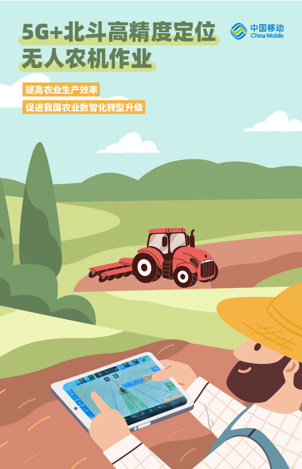 基于“5G+北斗”厘米级、亚米级等标准化高精定位服务,中国移动推动“5G+北斗”广泛应用于春耕播种、插秧等作业。厘米级定位能力应用于农机自动驾驶导航、无人机植物保护作业等,实现耕种全程自动化;亚米级定位能力应用于农机定位、农机作业监管等,实现农机作业轨迹、作业速度、作业状态实时监测。