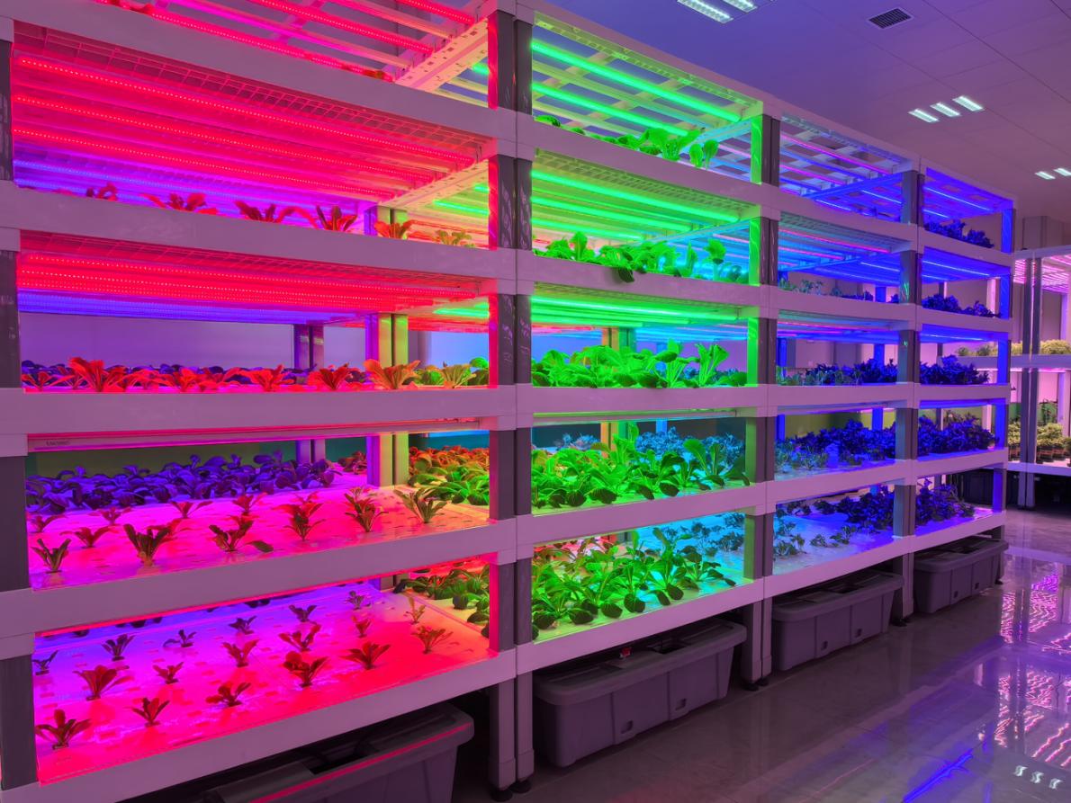 杨凌智慧农业示范园的植物工厂里,红蓝 LED 灯光下藏着植物生长的密码。“从种子到采收只要 42 天,一年能种 8 茬。” 生产技术负责人王芳摘下片奶油生菜,叶片上的水珠晶莹剔透。24 层立体种植架让单位面积产量提升数十倍,自动播种机每小时能播 2000 盘种子,洁净度达十万级的车间让蔬菜摘下来就能直接入口。“植物工厂种植不受环境和土壤的影响,以后在沙漠也能种出新鲜菜。”