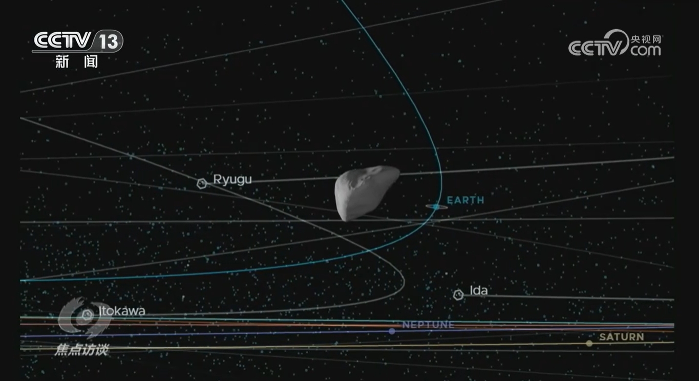 季江徽:“整个太阳系里面除了大行星以外,还有很多小行星,大部分分布在火星轨道和木星轨道之间,这样一个区域就叫作主带,所以主带彗星轨道是在主带,它又像彗星,就像311P一样,有六个彗尾,像孔雀开屏一样,所以有些专家给它起了一个绰号,叫孔雀小行星。通过天问二号这样一个探测任务回答这些小行星、彗星、主带彗星之间的联系,可以给出很好的答案。”