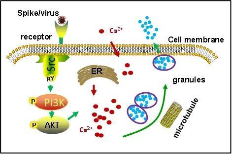 病毒的Spike/RBD蛋白结合受体后,激活肥大细胞并诱发快速脱颗粒,导致炎症因子风暴和组织损伤。研究结果表明,肥大细胞是冠状病毒诱发炎症反应的共性媒介细胞,为抗病毒治疗提供了新的靶点。