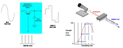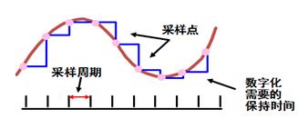 的一个最大不同是将模拟信号进行离散化。在数字世界里,永远只有0和1。如何将那些各种不同形状的模拟信号转换成为0和1呢?采样保持电路根据采样时钟将连续的模拟信号“等时间间隔的”、“实时的”转换为离散的电平,离散的电平再经过模数转换器(ADC)转换为一系列的0和1。对于8位ADC来说,8个连续的0和1组成一个采样点,代表了一个电平值,示波器将这些离散的采样点直接显示或将点和点通过某种方式相连显示为示波器屏幕上的波形。