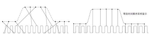 等效时间采样方法有两种:“随机等效采样模式”和“顺序等效采样模式”。两种方式各有优点,随机等效采样模式允许显示触发点前面的输入信号,而不使用延迟线路。顺序等效采样模式提供的时间分辨率和精度则要高得多。这两种方法都要求输入信号是重复的。