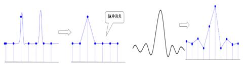 实时采样特别适合频率范围不到示波器最大采样率(备注:在示波器的面板上通常都会有标识采样率,该采样率就是指这台示波器可以工作到的最高采样率。但是,实际上示波器的“当前采样率”由于受到存储深度的限制,随着示波器采集时间的增加,采样率会被强迫地自动下降,通常可能小于最高采样率。)一半的信号,这里示波器可以在波形一次“扫描”中,采集超过足够量的点,构建准确的画面,实时采样是使用示波器捕获快速、单次、瞬态信号的唯一方式。
